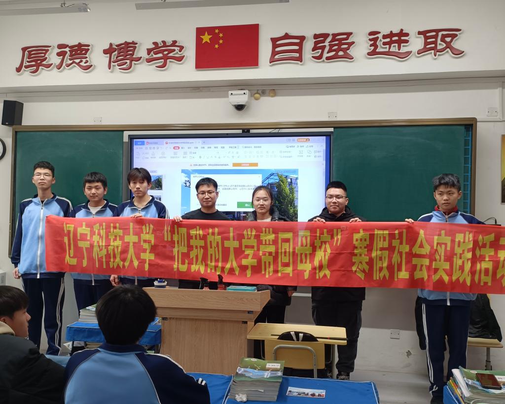 1月9日-1月16日,田磊、周缘、高源、周欣雨、李欣5名团队成员分别前往大洼高级中学、黑龙江省哈尔滨市双城区铁路中学以及昌图县第一高级中学,进行“把我的大学带回母校”寒假社会实践活动。