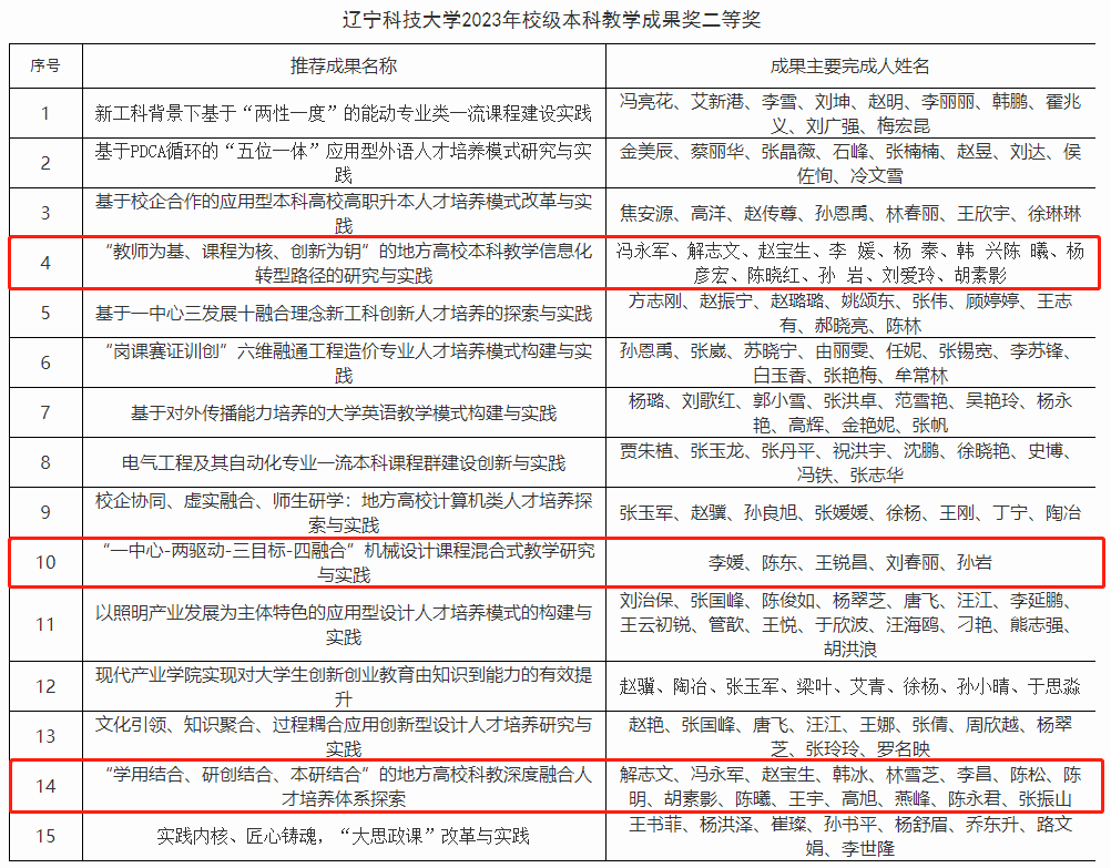 7月13日,开云官方网页版发布了关于2023年校级本科教学成果奖的获奖通知,此次评审根据《关于开展2023年校级本科教学成果奖评选工作的通知》(开云官方网页版教发〔2023〕70号)相关安排,经成果建设团队申报、学院推荐,学校组织专家综合评审,评选出2023年校级本科教学成果奖共42项,包括一等奖10项,二等奖15项,三等奖17项,我院有4个教学团队获奖。其中王立萍老师负责的团队荣获一等奖,冯永军、李媛、解志文老师负责的团队荣获二等奖。