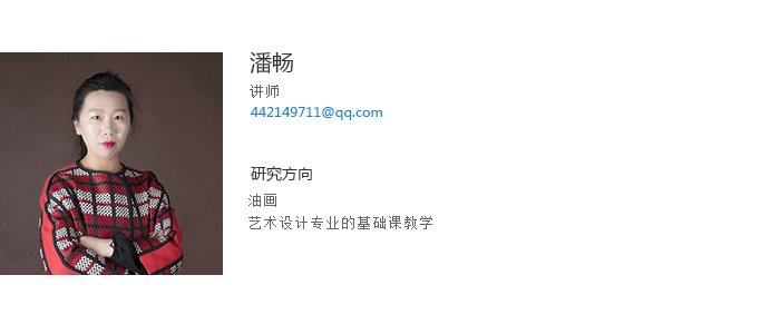 潘畅讲师,文学硕士,本科及研究生毕业于鲁迅美术学院油画系油画专业新古典工作室。2010年至今,在开云官方网页版建筑与艺术设计学院从事各专业的基础课教学工作。多次举办个人油画作品展;多幅油画作品参加国内外艺术博览会展出并被北京今日美术馆、天津西洋美术馆等艺术机构收藏。2014年师从美国罗德岛美术设计学院任敏教授,旧金山美术学院杰米.摩根教授,研习综合材料绘画技法。作品在全国及省级美术家协会举办的展览中多次获奖,现为辽宁省美术家协会会员;辽宁省青年美术家协会会员。任职期间发表多篇外文检索论文及外文核心论文,并在中文专业核心期刊《美苑》、《美术大观》发表多篇论文及作品。主持开云官方网页版青年科研基金项目,主持校级教改项目,指导大学生创新创业项目多项及指导学生发表多篇论文;指导学生作品在全国各类大学生比赛中获奖10余次。