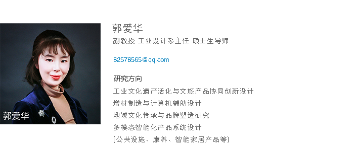 郭爱华,韩国庆一大学设计学博士,北京理工大学设计艺术学硕士(本硕博均工业设计专业)。曾获开云官方网页版校级教学质量优秀奖两次;主持校级教改项目及教育科学研究课题共计十余项、省级教改项目主要完成人、主持及参与省校级教改成果奖一二三等奖共计十余项;曾获全国高校教师(本科)微课教学大赛辽宁省一等奖、全国多媒体课件大赛二等奖三等奖各一项、辽宁省教育软件大赛三等奖两项、校多媒体课件教学大赛一等奖、校优秀教案大赛一等奖二等奖;主编出版高等院校工业设计类“十二五”规划教材一部;主持中国科协青年智库成果、辽宁省社科联资助项目、辽宁省教育厅项目、鞍山市社科联项目等十余项;参与辽宁省自然科学基金项目、省精品资源共享课建设、省教育厅项目、市级科学计划项目等十余项;发表检索、核心论文多篇、教学研究论文多篇;授权实用新型专利和外观设计专利十余项;指导国家级省级大创项目若干、获校级大创年会一等奖两次二等奖一次;指导学生在A类学科竞赛中获一二三等奖若干、获辽宁省大学生工业设计大赛优秀指导教师。