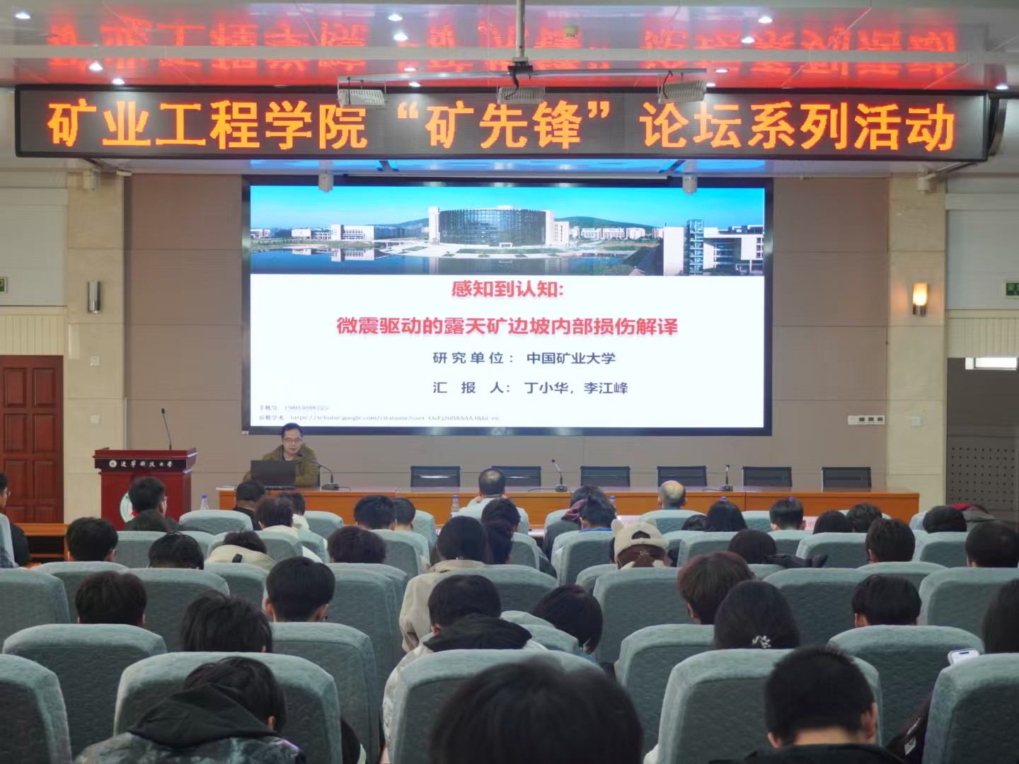 在图书馆报告厅举办的“矿先锋”论坛,是学院教风、学风联动专项行动系列活动之一。专家们与同学们分享了涵盖露天矿开采、巷道支护、岩石破裂机理及边坡损伤监测等多个采矿工程学科核心领域专业前沿知识和最新研究成果。“矿先锋”论坛系列活动是矿业工程学院打造的特色学术品牌,此次活动的举办将为采矿专业学生提供与行业专家直接交流的宝贵机会,有助于学生及时掌握学科前沿动态,激发学术研究兴趣,提升专业综合能力。后续将持续依托“矿先锋”论坛平台,邀请更多领域专家开展学术交流活动,为培养高素质采矿工程专业人才奠定坚实基础。