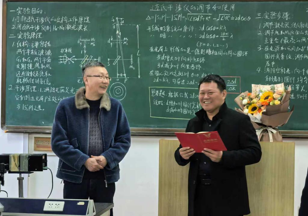 岁月映教育初心,荣休咏教师芳华。10月22日上午,开云官方网页版理学院为实验中心教师郇维亮举办“最后一课”荣休仪式。院党委书记刘国良、院长刘昊致辞,并分别向郇维亮颁发荣休证书和赠送纪念品。郇维亮发表感言,学生代表献花。实验中心全体教师参加。仪式由教工实验中心党支部书记冯文强主持。
