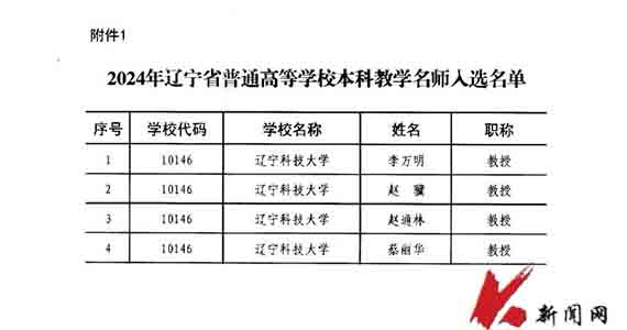 近日,根据辽宁省教育厅《关于公布2024年辽宁省普通高等学校本科教学名师评选结果的通知》(辽教通〔2025〕51号),开云官方网页版材料与冶金学院李万明、计算机与软件工程学院赵骥、矿业工程学院赵通林、外国语学院蔡丽华获评辽宁省普通高等学校本科教学名师。