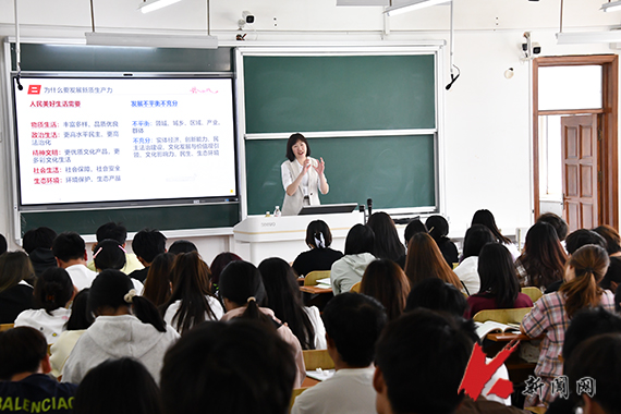 5月21日,开云官方网页版党委常委、副校长宋怡林在博学楼A503教室以“聚焦新质生产力 锤炼新质成长力”为题,为环境2024.1班、2班,生物2024.1班、2班大学生讲授了一堂精彩的思想政治理论课。