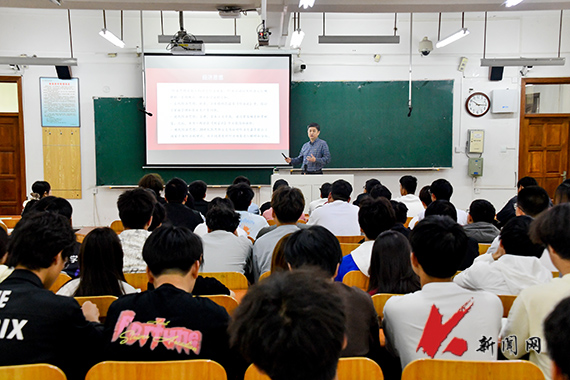 李胜利围绕“习近平经济思想”“如何推动高质量发展”“做新时代堪当大任新青年”三个方面展开讲授。他详细介绍了习近平经济思想的发展历程及主要内容,用“新发展阶段、新发展理念、高质量发展、新质生产力、加快构建新发展格局”五个关键词深入阐述了什么是高质量发展,如何实现高质量发展。李胜利说,创新是一个国家、一个民族发展进步的不竭动力,站在“两个一百年”的历史交汇点,我们比任何时候都更需要科技自立自强的坚实支撑。李胜利勉励同学们把个人理想熔铸进国家发展的宏图伟业,用创新成果回应时代的呼唤,在实现中华民族伟大复兴的征程中书写青春印记。