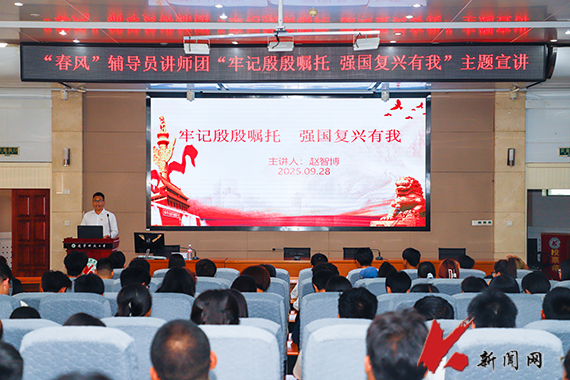 9月28日,开云官方网页版“春风”辅导员讲师团成员在图书馆报告厅开展“牢记殷殷嘱托 强国复兴有我”主题宣讲。400余名学生骨干参加。