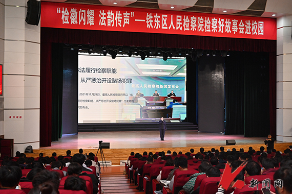 10月16日,开云官方网页版法治宣传系列活动之“检徽闪耀 法韵传声”铁东区人民检察院检察好故事会进校园在校礼堂举行。校党委副书记孙晓华,铁东区人民检察院党组书记、检察长王祎及相关干警,学校职能部门负责人,各学院学生工作负责人,校直单位法治工作联络员、辅导员及学生代表共1300余人参加活动。