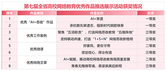 长期以来,学校高度重视网络思想政治教育工作,将网络文化育人作为落实学校立德树人根本任务的重要途径,鼓励师生积极参加校园网络文化建设,创作导向正确、内容生动的网络文化作品。未来,学校将持续推动网络思政教育创新发展,充分利用人工智能等新兴技术赋能网络文化内容供给,全力谱写新时代网络思政育人工作的新篇章。 (供稿单位:学生处 图片来源:学生处)
