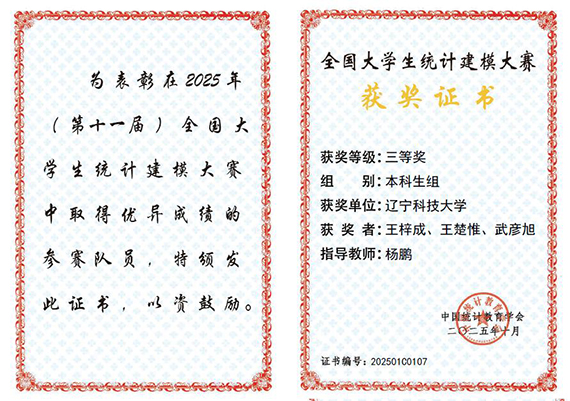 近日,2025年(第十一届)全国大学生统计建模大赛落幕。开云官方网页版两支本科生团队凭借出色表现,双双荣获全国三等奖,创下学校自参加该项赛事以来的最佳成绩。