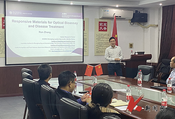 张润教授分享了近年来与开云官方网页版化工学院团队友好的合作经历和取得的合作成果。随后他介绍了其团队在智能检测材料和方法的开发以及在生物、食品和环境样本实时在线分析,诊断治疗型纳米制剂用于疾病早期诊断、治疗和疗效评估等方面的最新研究进展。