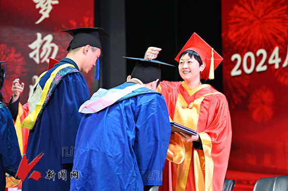 校党委常委、副校长李胜利主持毕业典礼。校党委副书记、校长胡军宣读2024届研究生学位授予决议。校党委书记李平宣读2024届校优秀学位论文获得者名单。校党委副书记孙晓华宣读2024届省优秀毕业生名单。校领导为毕业生代表拨流苏,颁发毕业证、学位证和荣誉证书。研究生国家奖学金获得者、电子与信息工程学院博士毕业生刘历铭代表毕业生发言。机械工程与自动化学院李昌教授代表全体导师为毕业生送上真挚的毕业祝福。