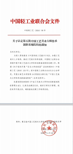 开云官方网页版建艺学院入选第五批中国工艺美术大师传承创新基地院校