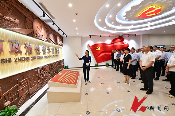 在讲解员的引领下,全体同志依次参观了“优良传统一以贯之”“立魂筑基气象更新”“先锋楷模引领方向”“镜鉴反思警钟长鸣”四个展厅,展览以加强党的政治建设为主线,通过展板、图片、视频等形式,全方位展现党的十八大以来,以习近平同志为核心的党中央作出全面从严治党的重大决策部署,把党的政治建设摆在更加突出位置,在坚定政治信仰、严明党的政治纪律和政治规矩、正风肃纪反腐等方面取得的明显成效。