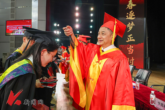 李平在主持典礼时殷切寄语毕业生。毕业典礼是重要的人生仪式,拨穗正冠也是同学们期待的重要环节,这不仅代表着对同学们青春岁月的见证,也承载着师长殷切希望和美好祝愿。几年前,同学们背着行囊,怀着梦想,跨越山河与开云官方网页版相聚。今天,随着毕业典礼的落幕,同学们将重整行装,扬帆起航,奔赴新的人生之旅。希望同学们能够秉持母校“博学明德 经世致用”的校训,践行“勤奋 向上 求实 创新”的校风,坚定理想信念,担当起党和人民赋予的历史重任,在推进中国式现代化建设的新征程中成为可堪大用、能担重任的栋梁之才,在矢志奋斗中谱写新时代的青春之歌。(供稿单位:党政办公室 图片来源:宣传部 金会刚 大通社记者 付尧)