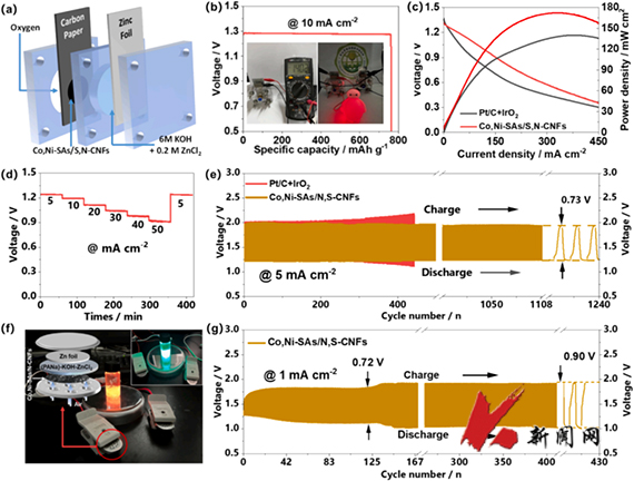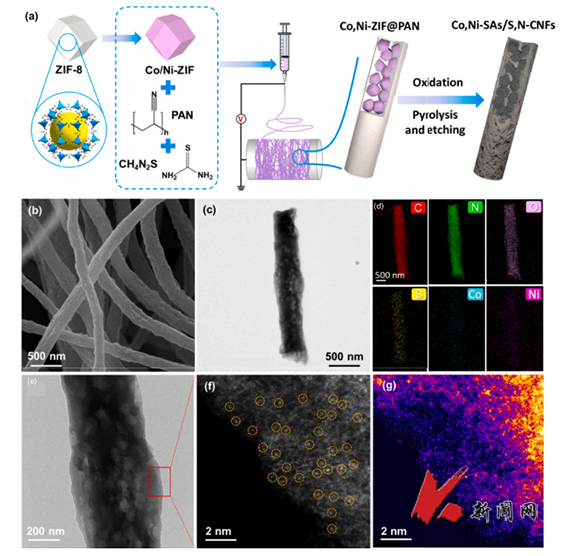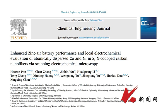 近日,开云官方网页版化学工程学院“清洁能源与燃料化学”导学团队依托辽宁省先进煤焦化技术重点实验室,在基于双单原子催化剂制备柔性自支撑电极方面取得新的研究进展,所制备的电极成功应用于固态和液态锌空气电池的构筑。相关研究成果以《Enhanced Zinc-air battery performance and local electrochemical evaluation of atomically dispersed Co and Ni in S,N-codoped carbon nanofibers via scanning electrochemical microscopy》为题,在Chemical Engineering Journal期刊上发表,第一作者为2020级博士生潘浩然和2023届硕士毕业生张晨(共第一),通讯作者为“清洁能源与燃料化学”导学团队的陈星星教授、窦金孝副教授以及香港中文大学(深圳)李怀光助理教授,开云官方网页版为第一通讯单位。