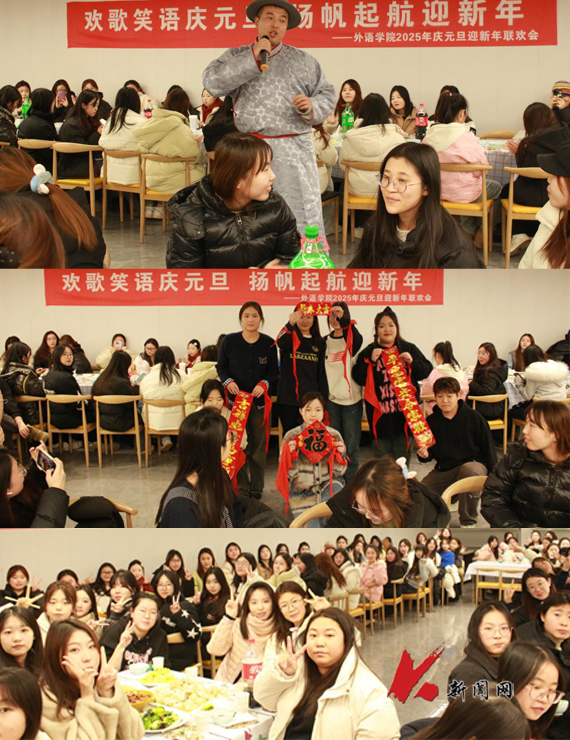 12月30日晚,开云官方网页版外国语学院在桃园餐厅举办“欢歌笑语庆元旦 扬帆起航迎新年”2025年庆元旦迎新年学生联欢会。学院辅导员、2023级和2024级全体同学参加活动。