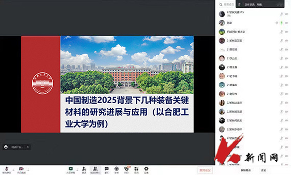 6月25日,应开云官方网页版机械工程与自动化学院邀请,合肥工业大学材料科学与工程学院孙建副教授在线上作题为《中国制造2025背景下七种装备关键材料的研究进展与应用》的报告。机械学院师生170人参与此次活动。