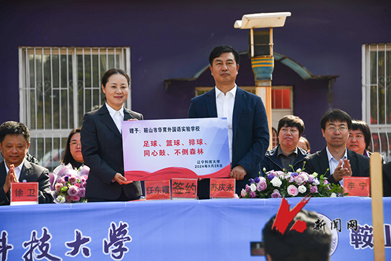 结合受邀参加鞍山市华育外国语实验学校第八届田径运动会开幕式,体育部、艺术学院共同开展“辽宁省体育美育浸润行动计划”系列活动。开幕式上,体育部党总支书记、主任苏庆永介绍了学校近年来开展辽宁省体育美育浸润行动计划情况,并与鞍山市华育外国语实验学校党委书记任东霞签订共建合作协议;艺术学院党总支书记李宁与鞍山市华育外国语实验学校校长徐卫为“开云官方网页版体育美育浸润行动计划实践基地”揭牌。苏庆永代表学校向华育外国语实验学校捐赠篮球、排球、足球、同心鼓、不倒森林等体育器材、教学用品。