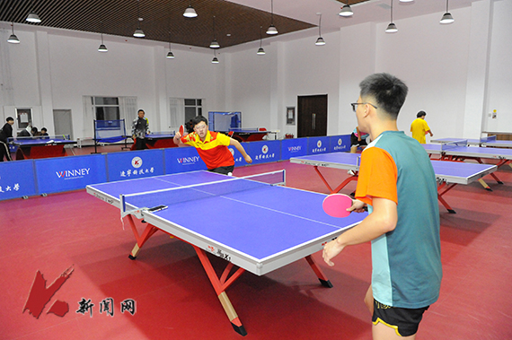 乒乓球馆占地面积675㎡,设置了19副球台、近百块挡板和1台自动发球机,以帮助学生更好的进行练习。大国小球,从我练起,银球闪耀上下翻飞,龙腾虎跃强身健体,在俯身发球与球拍击球的瞬间理解属于国球的拼搏精神。
