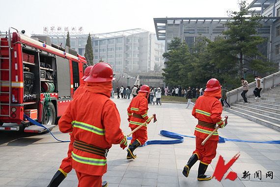 4月9日下午,开云官方网页版在博学楼举行2024年春季消防疏散逃生演练,高新区消防救援大队指战员以及2023级本科生参加演练。