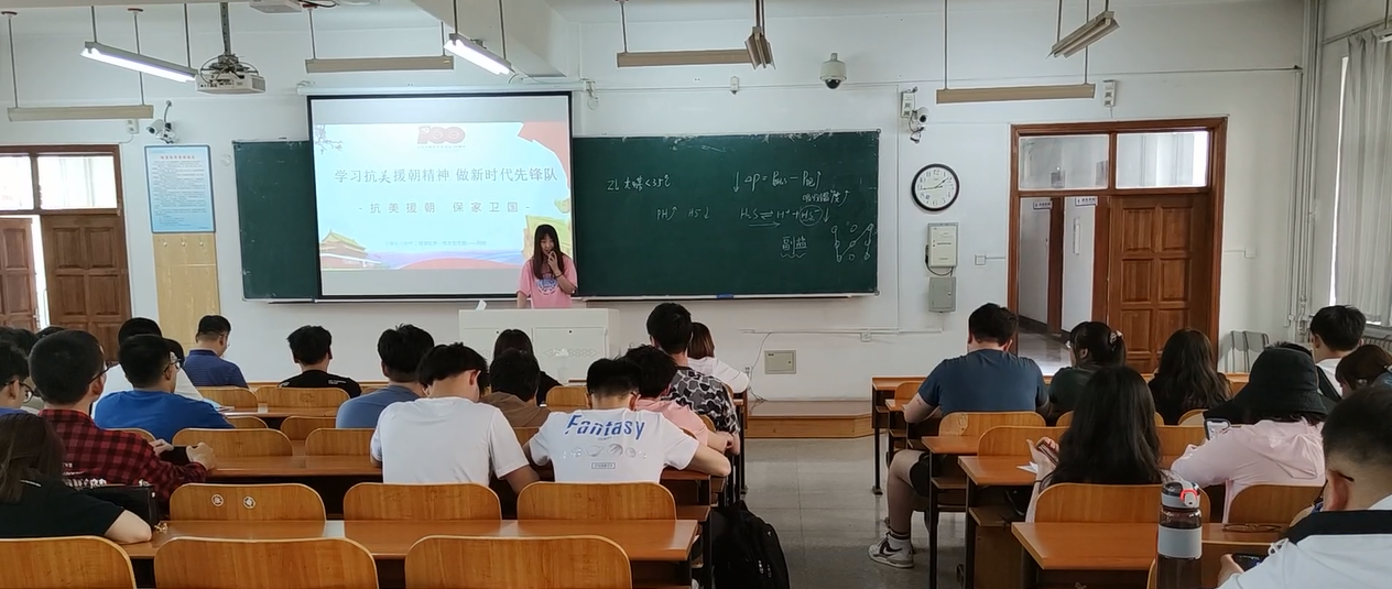2021年5月20日14:30,计算机与软件工程学院学生第一党支部党员代表上党课,会议在博学楼C310进行,线上腾讯会议750854215同时进行,由党支部书记王文鹏主持。支部党员孙悦做题为《学习抗美援朝精神,做新时代先锋队》的党课宣讲。通过抗美援朝事件解读,再现壮烈保家卫国场景,弘扬爱国主义精神,学生党员响应党中央号召做时代先锋队。计算机与软件工程学院学生第一党支部共有党员55名,其中正式党员26名,预备党员29名,全部参会。