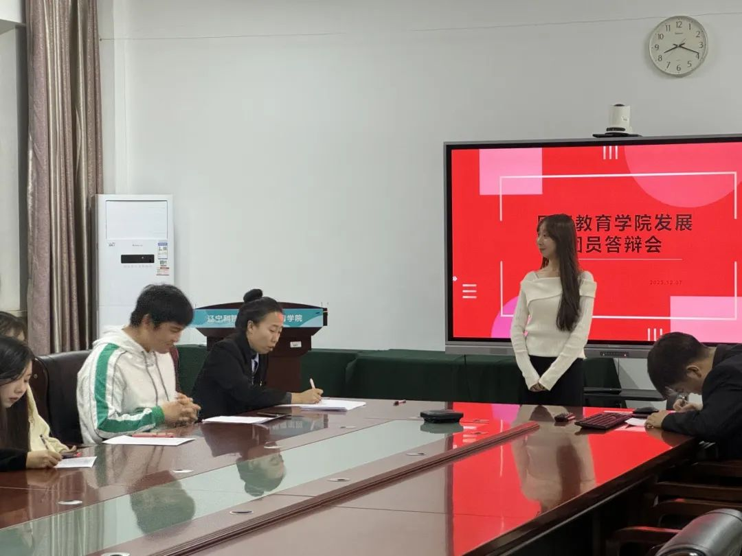 12月7日晚,国际教育学院于博远楼206会议室召开国际教育学院团员答辩会。答辩会由学院辅导员张翀睿、党员代表、团员代表、团支书代表、学生骨干代表、群众代表等七人担任现场评委,团员候选人参加本次答辩会。