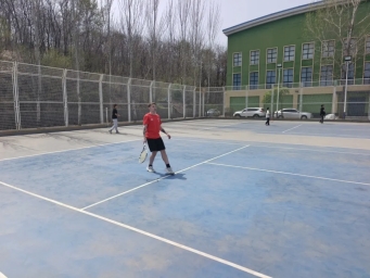 在第一阶段比赛中,学院代表队的四名运动员POLINA、 DANIS、JAFFAR、杨昀臻表现出色,成功以小组第二的身份晋级下一赛段。5月6日进行的5-8名排位赛中POLINA、 DANIS两位运动员负责单打,杨昀臻和JAFFAR运动员负责双打。四名运动员在球场上配合默契,身手敏捷,三场比赛全胜,用精湛的球技和不懈的努力展现出国教网球运动员的风采。