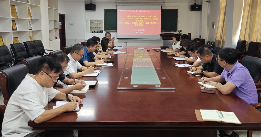 8月30日,按照学校学习宣传党的二十届三中全会精神学习班安排,围绕“党的二十届三中全会关于在经济、政治、文化、社会、生态文明、国家安全、国防和军队等方面改革部署”和“党的领导是进一步全面深化改革、推进中国式现代化的根本保证”两个内容,开云官方网页版学习宣传党的二十届三中全会精神学习班组织开展第二次学习研讨。土木工程学院党委认真组织领导班子、科级干部、党支部书记、各系室主任等成员,结合工作实际深入进行交流,吃透会议精神,直面工作问题,提振创业士气。