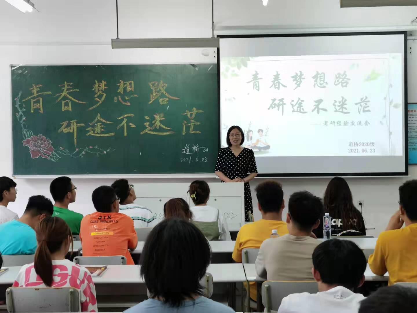 作为道桥2020-2班的班主任,真心关爱每一名学生,通过迎接新生,走访寝室,查看早、晚自习的学习情况,搭建起与学生沟通交流的平台。组织召开“三比一促一传承”活动,促进学生成长与发展,提醒同学们不要“等、靠、要”,要培养自身独立意识,对自己负责。通过“青春梦想路,研途不迷茫”考研经验交流会,帮助学生掌握相关考研技巧,增强学生考研信心,明确考研目标。召开“诚信考试”主题班会,树立道德新风,教导学生诚信考试、诚实做人。掌握班级的整体学习成绩,针对各科中不及格成绩,查找原因,单独找班长、学委和一些同学进行谈心活动,了解班级学习氛围,针对个人情况不同,进行了具体原因分析,提出改进措施,要求学生制定学习计划,并督促执行。