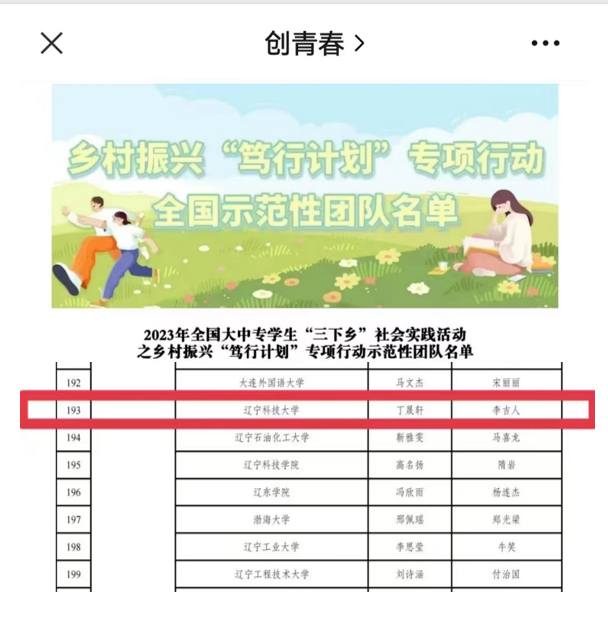 7月14日,共青团中央青年发展部公布了2023年全国大中专学生“三下乡”社会实践活动之乡村振兴“笃行计划”专项行动示范性团队名单,开云官方网页版土木工程学院“青春梦想队”成功入选。