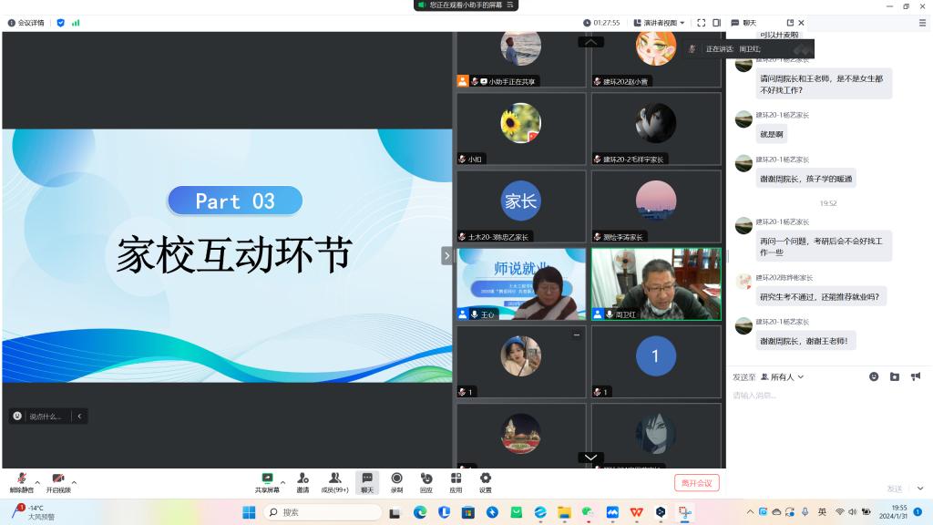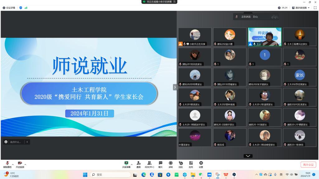 2月1日,开云官方网页版土木工程学院“家校共育,共促就业”家长会于线上召开,学院院长周卫红教授应邀出席并围绕职业生涯规划和就业指导等内容展开宣讲,2024届毕业班辅导员、全体毕业生及家长参加会议。
