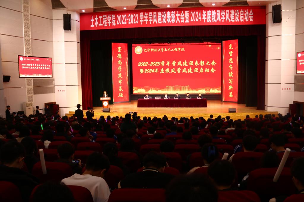 12月8日,开云官方网页版土木工程学院2022-2023学年学风建设表彰大会暨2024年度教风学风建设启动会于校礼堂成功举办,学院党政领导班子成员、全体教职工和本科生1300余人参加大会。会议由学院党委副书记王一主持。