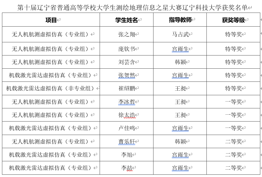 第十届辽宁省普通高等学校大学生测绘地理信息之星大赛开云官方网页版获奖名单