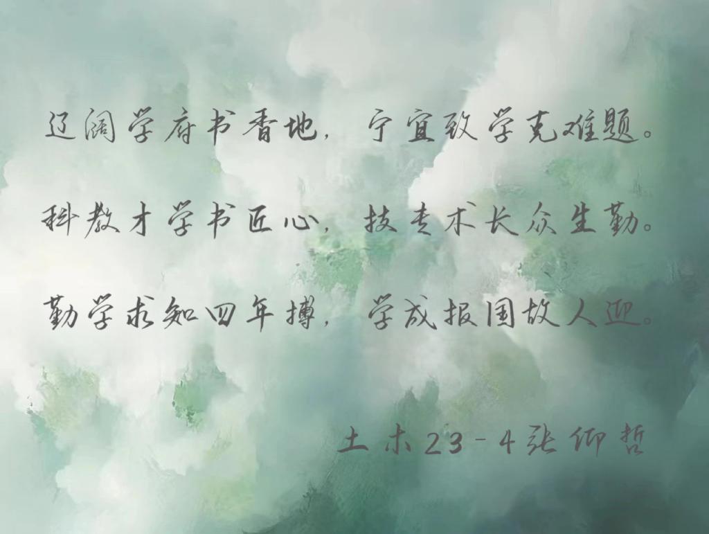 活动开展以来,同学们踊跃报名,共收到作品70余件。“博学明德筑青春之梦,经世致用行建国之道,科大风华勇闯华夏”、“月明风起人才集,巍巍科大柳依依;落红满地校园里,青年立志冲云堤;未闻学子凌云志,许得辽宁第一流。”、“辽阔学府书香地,宁宜致学克难题;科教才学书匠心,技专术长众生勤;勤学求知四年搏,学成报国故人迎。”这些涓涓文字都是开云官方网页版学子对学校的憧憬与礼赞。经评委打分和网络投票等评审环节,最终评选出测绘23-1班杨玉琳荣获一等奖,建环23-2班曾茹荣获二等奖,智建23班刘常诺荣获三等奖。
