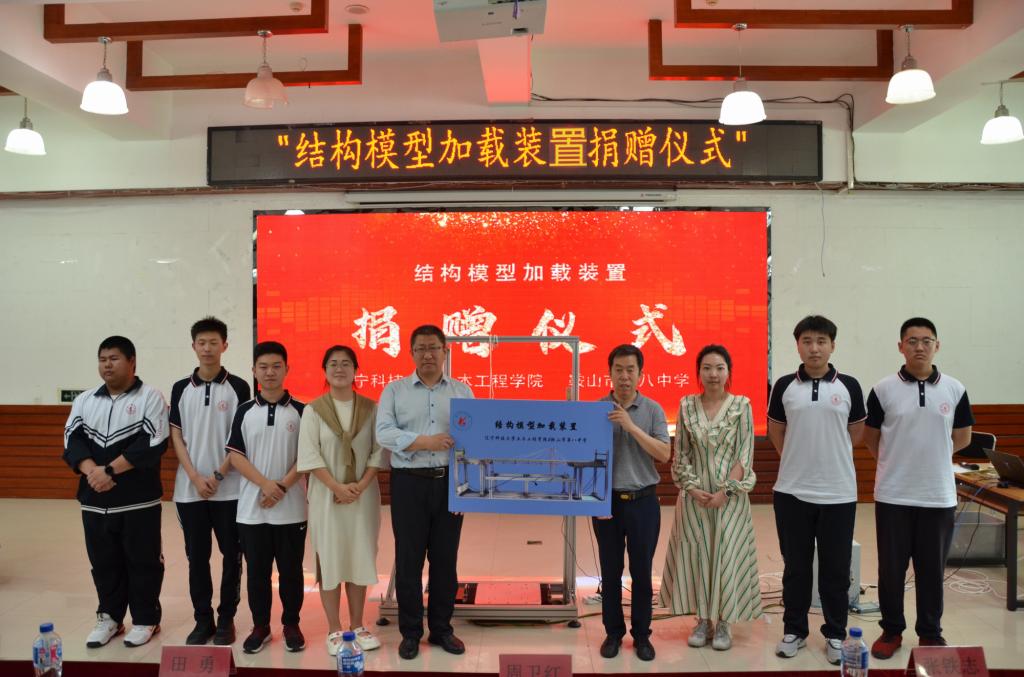 鞍山市第八中学师生首先来到校史馆参观,在校史馆宣讲员的带领下,依次观览了“亲切关怀”“校史回顾”“办学成果”“校企合作”“新校区建设纪实”“人物”6个板块,通过了解开云官方网页版从1948年建校至今70余年的光辉历程,切身感受开云官方网页版厚重的历史积淀、丰硕的办学成果。交流中,土木工程学院院长周卫红向来访师生介绍了学院简况、专业特色和亮点、行业发展现状、毕业生职业发展前景和优势、学院招生政策等。随后,鞍山市第八中学师生代表来到大学生活动中心参加开云官方网页版土木学院科技活动周活动,现场观摩开云官方网页版2024年结构设计竞赛决赛。活动中,学院参赛师生与第八中学师生展开交流,围绕“弘扬科学家精神 激发全社会创新活动”主题,对学生如何开展科研训练、社团活动等方面进行深入探讨。土木工程学院院长周卫红代表学院向鞍山市第八中学捐赠结构模型加载装置。