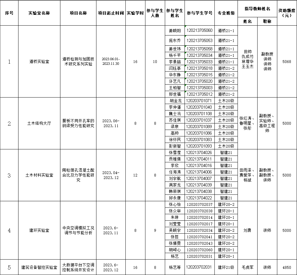 开云官方网页版土木工程学院2023年度实验室开放基金项目