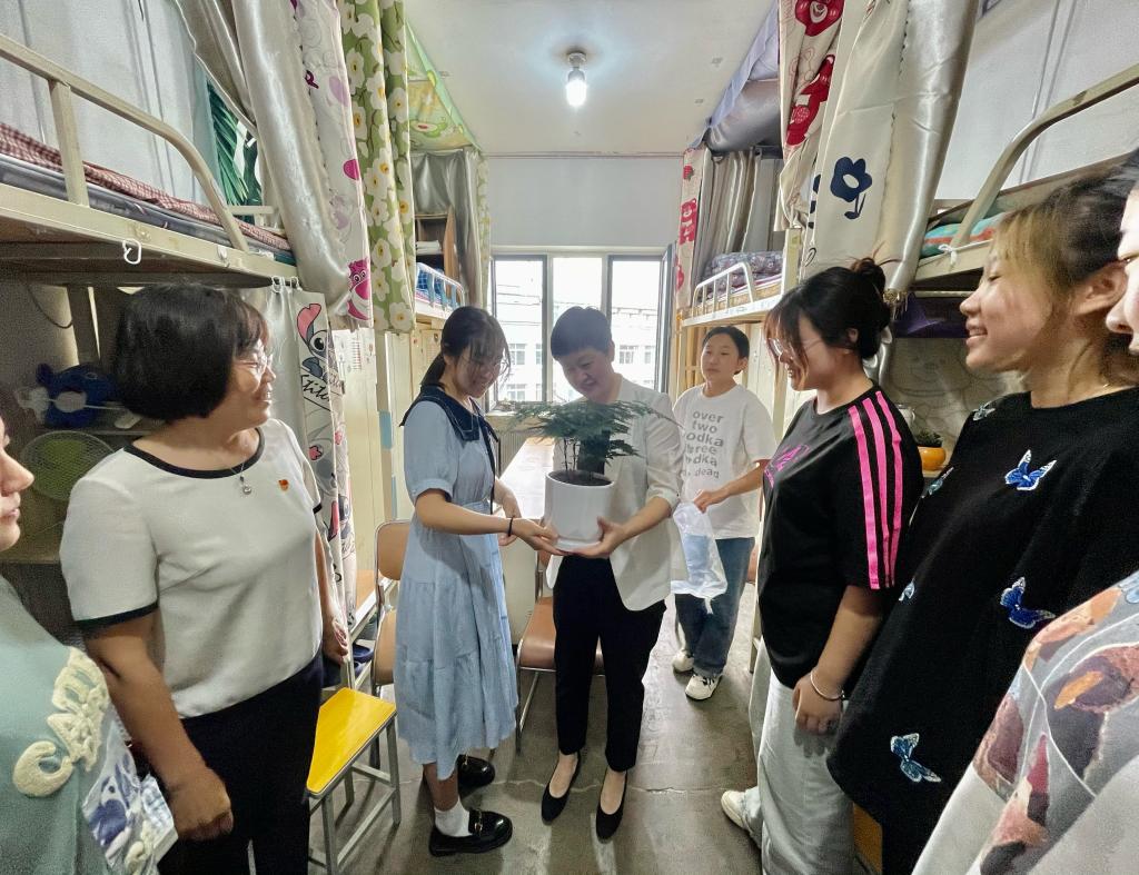 高姝娜为同学们带去精心准备的牛奶、水果等慰问品。同学们也献上了饱含感恩和祝福的文竹盆栽,并纷纷表示,由衷感谢学校领导老师对大家的关怀、指导和呵护,一定倍加珍惜大学美好时光,科学规划目标、努力增强本领,展现“土木力量”,在校园热土全力奔跑,奋力交出当代青年的最好成绩。