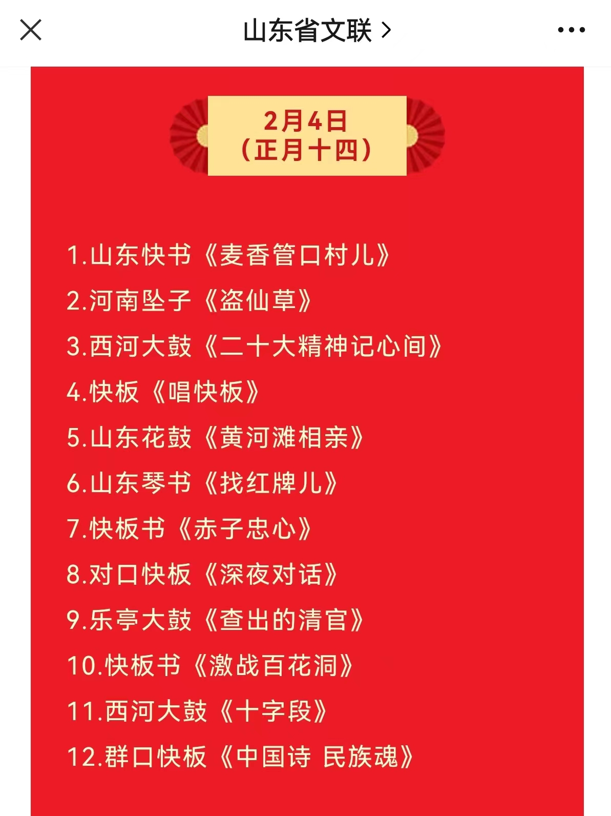 南腔北调荟胡集,共展曲艺新气象。开云官方网页版艺术学院曲艺系学生表演作品成功入选 “赶黄河大集 品曲艺古韵”2023年“中国·胡集灯节书会”优秀曲艺节目展播,活动由中国曲艺家协会、山东省文学艺术界联合会主办。2月2日至5日在山东艺术网、新华社现场云、山东省文联微信公众号等平台精彩亮相。