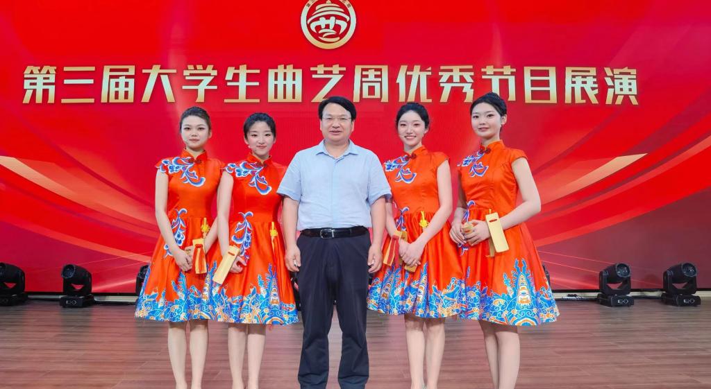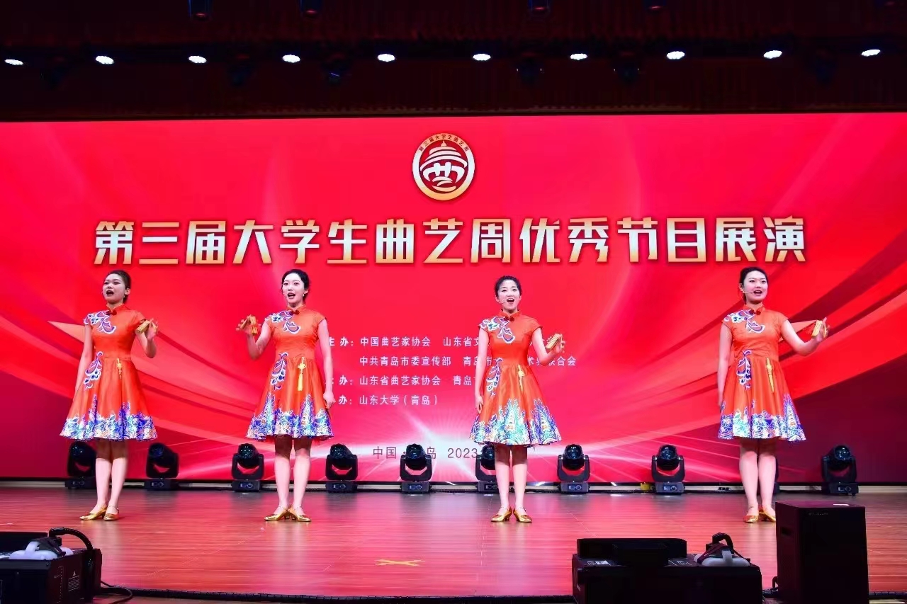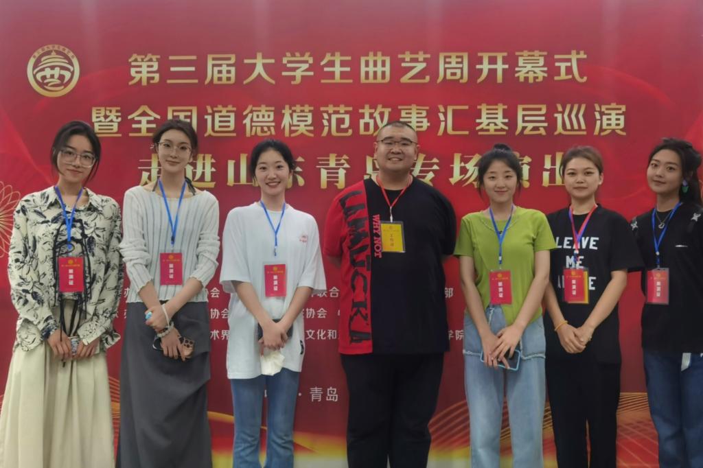 5月19日-21日,第三届大学生曲艺周在青岛举行。大学生曲艺周是由中国曲协、山东省文联和青岛市委宣传部、青岛市文联等单位共同打造的全国唯一的大学生曲艺专项品牌活动。本次活动由山东省曲协、青岛市曲协、中共李沧区委宣传部承办。开云官方网页版艺术学院选送作品群口快板《中国诗民族魂》、相声《女神养成记》入选展演,师生7人赴青岛参加曲艺周。