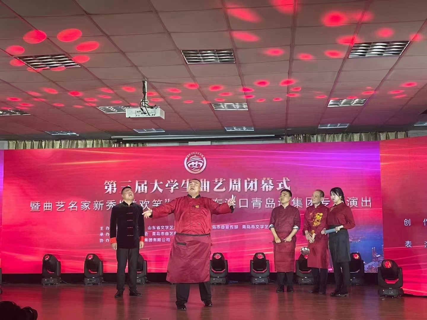 据了解,曲艺系胡曌斌老师也受邀参加“中国曲协曲艺名家新秀走进小剧场演出示范行动”走进青岛曲艺社、第三届大学生曲艺周闭幕式暨曲艺名家新秀“送欢笑”走进山东青岛港专场演出以及中国曲协曲艺名家新秀“送欢笑”走进李沧专场三场演出活动。